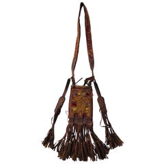 Moroccan Leather African Tuareg Crossbody Bag with Fringes 1970