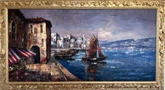 Fishing Boats and Harbourfront Houses French Mediterranean Port Scene