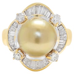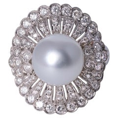 Estate South Sea Pearl & Diamond Platinum Ring 15.2mm