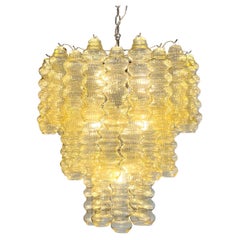 This stunning pair of table lamps were handblown in Murano, Italy- the island off the coast of Venice renowned for centuries for its superlative glass production. They feature undula...