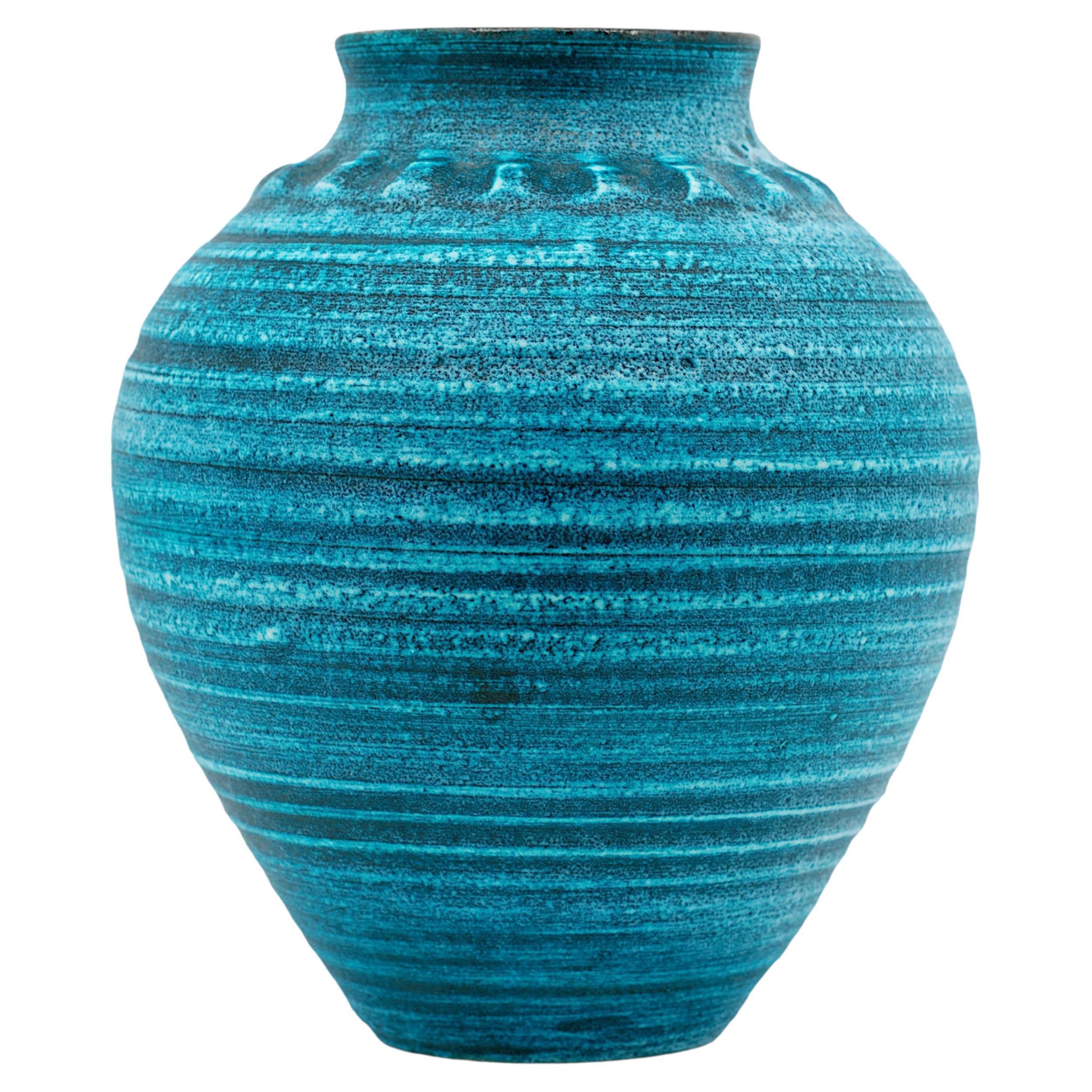 Accolay Turquoise Blue Ceramic Vase, Mid-Century Modern, France, 1950s