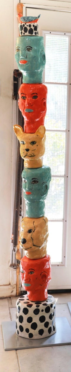 Palm Springs Totem 1 - Modern Unique Muted Tone Abstract Playful Resin Sculpture