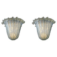 Pair of Italian Glass Flower Wall Sconces, Made in Italy This exquisite pair of wall sconces makes a striking decorative statement. Each sconce features handmade glass flowers, ensu...