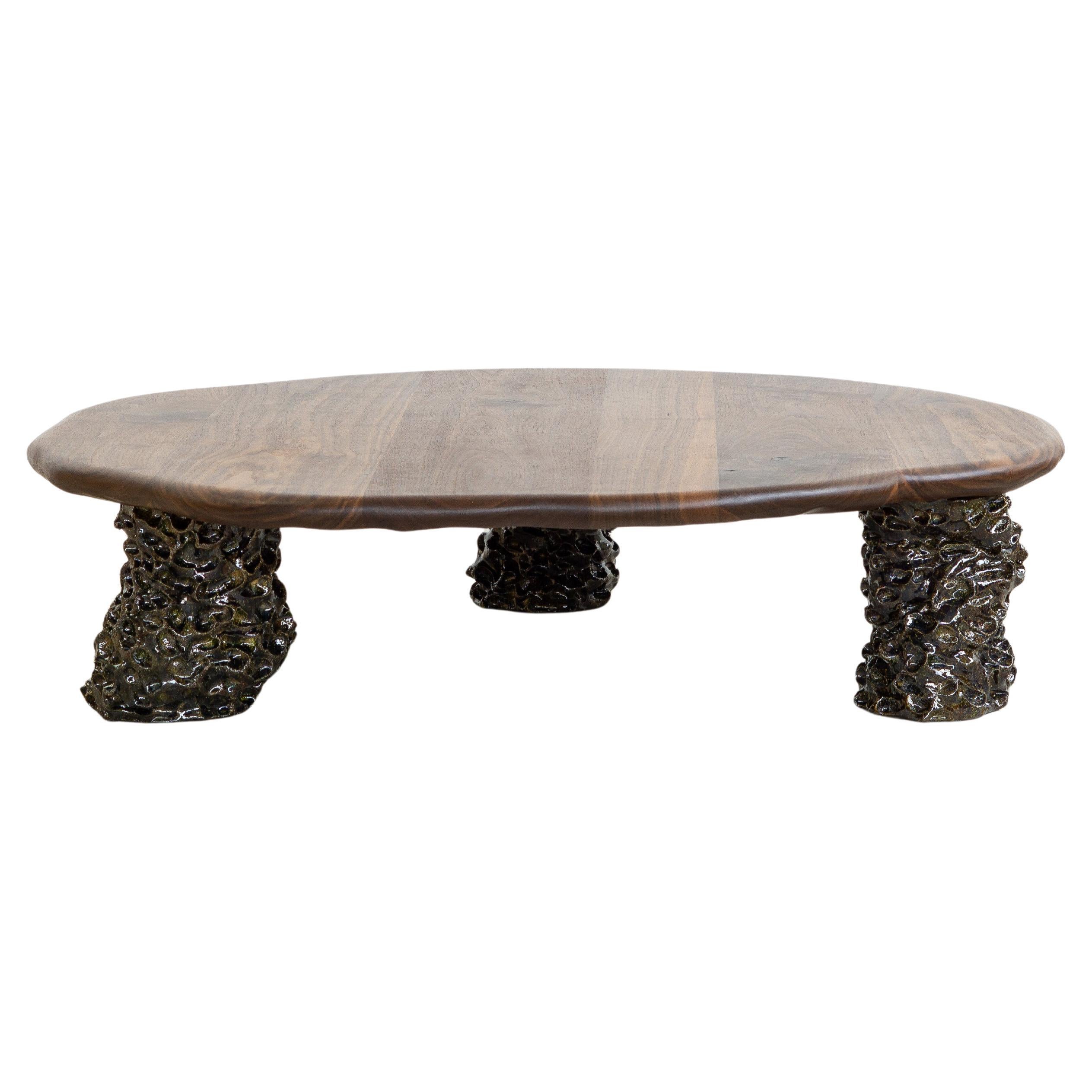 Sculptural Coffee Table – White Oak & Glazed Ceramic