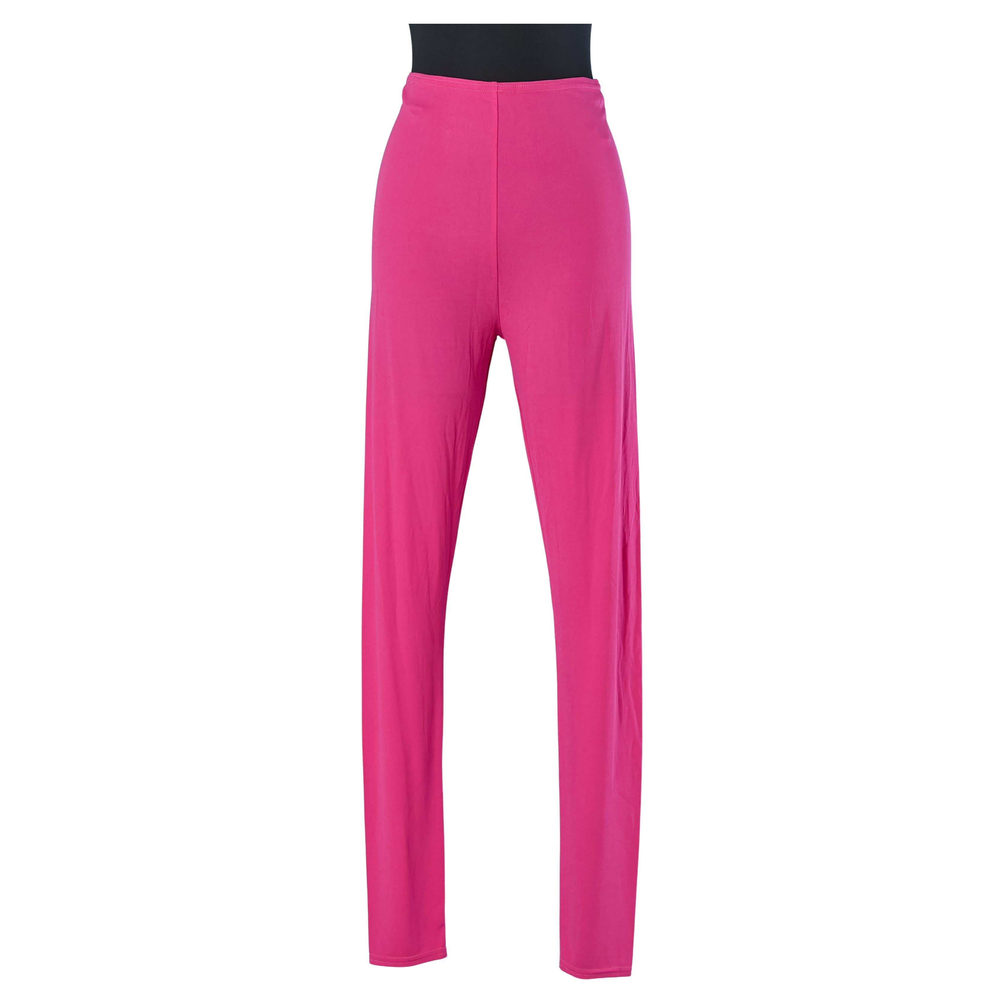 Pink jersey evening dress wrapped and draped. Same jersey lining. Zip closure on the middle back + shoulder-pad. SAMPLE