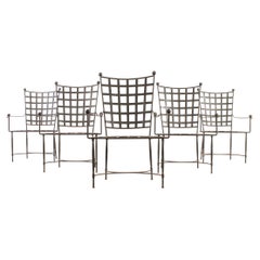 This wrought iron fire screen was produced by Atelier Marolles in France during the 1950s. The structure is composed entirely of hand-forged iron, featuring a rectangular frame suppo...