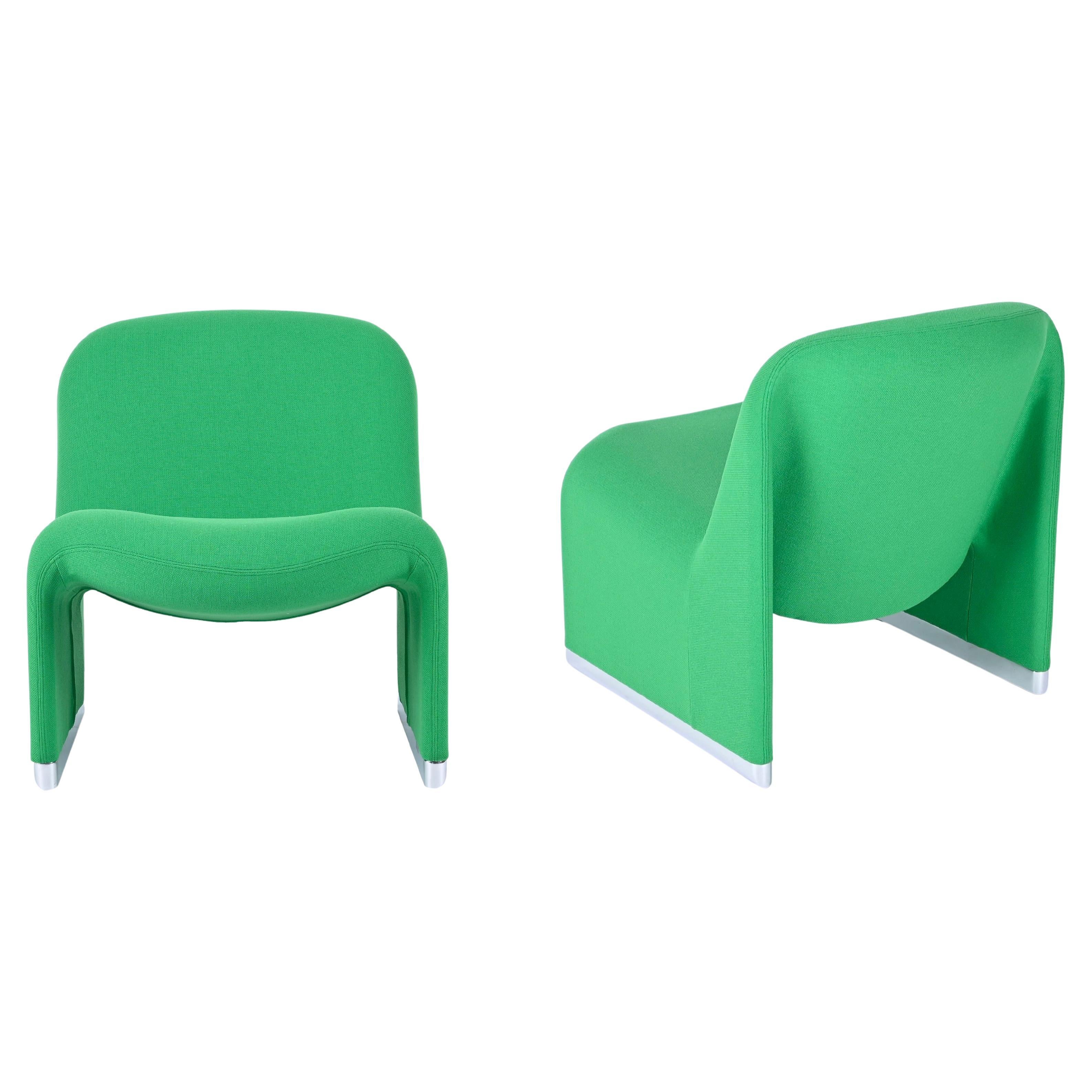 Fantastic Alky" chairs in a stunning vibrant green soft fabric. Designed by Giancarlo Piretti during the 1970s and produced by Anonima Castelli in Italy. Signed on the chrome feet.