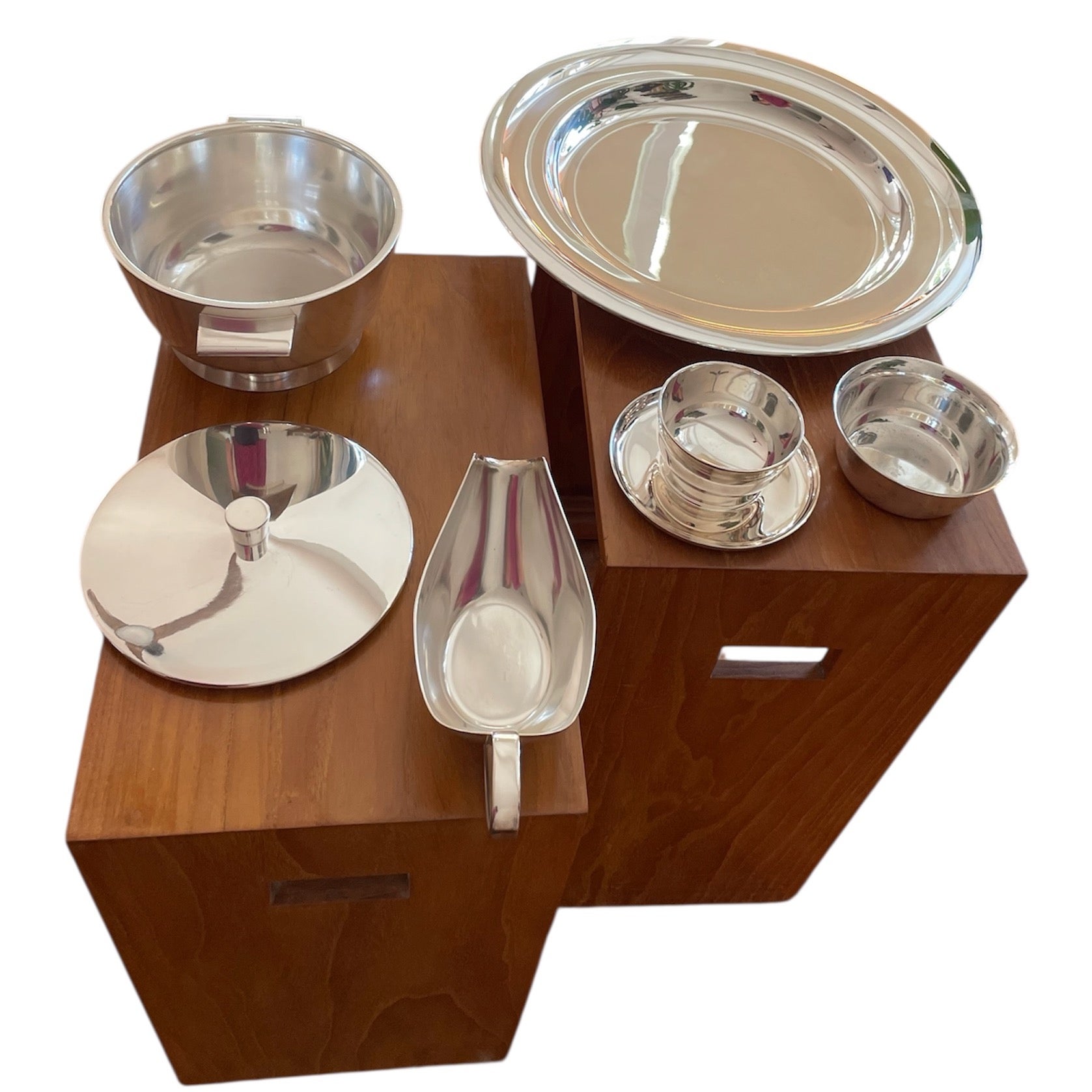 Gio Ponti Silver Plated Tureen, Sauce Boat, large Serving Dish and Bowls, Krupp