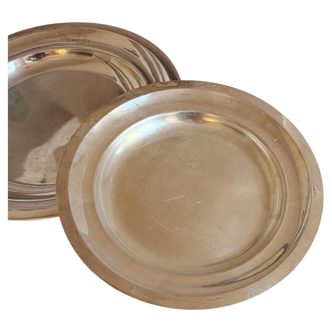 A wonderful pair of Krupp Milano serving platters reclaimed from the Alexandra Plaza Hotel. Both platters are stamped Krupp Milano, Alexandra Plaza.