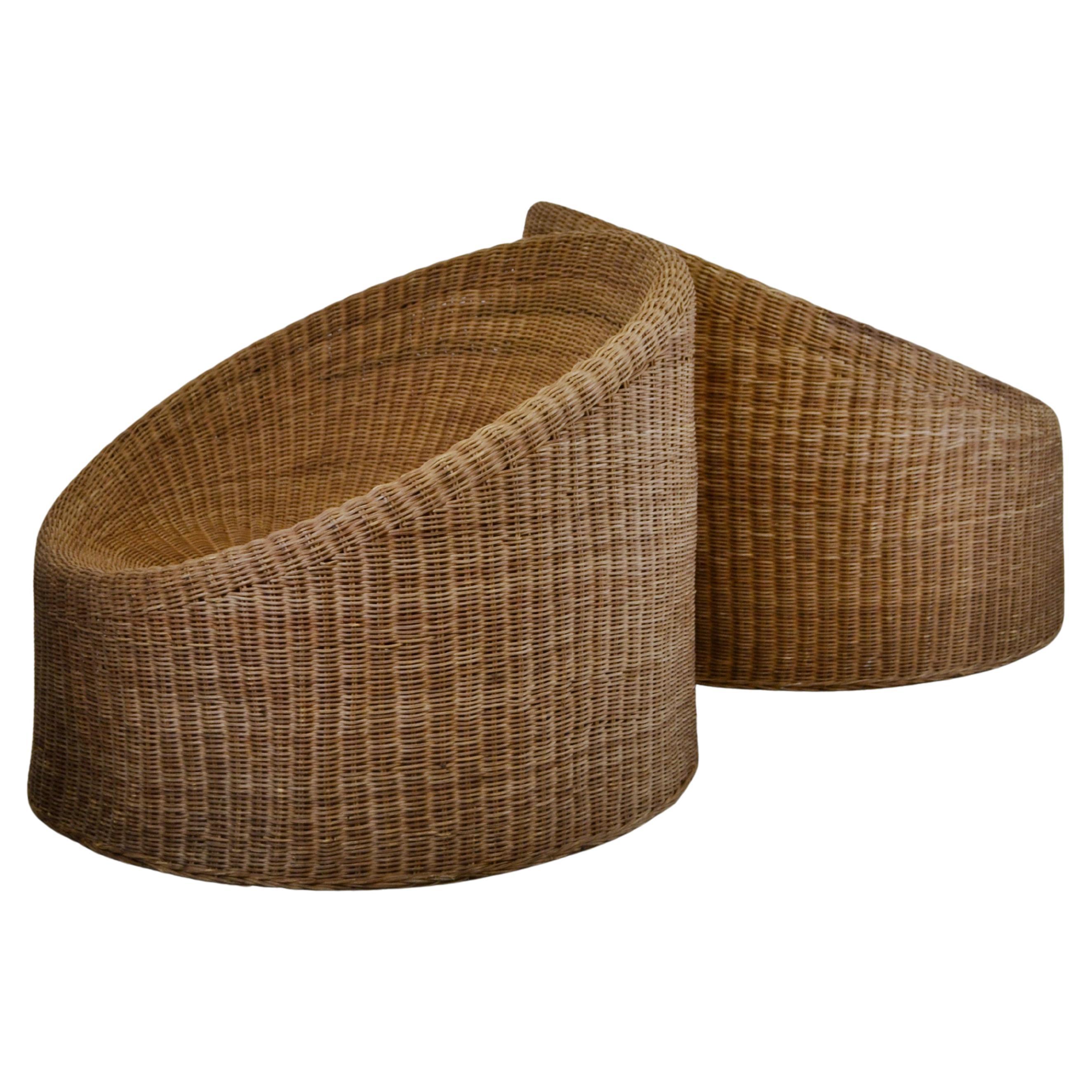 Set of Two Eero Aarnio "Mushroom" Juttu Stools In Rattan/Wicker, Asko 1960s