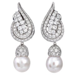 What a beautiful, elegant pair of earrings. You can dress them up or down. The pearls measure 6 x 4 mm. The earring is then enhanced by three 1.5 mm diamonds on each earring. The...