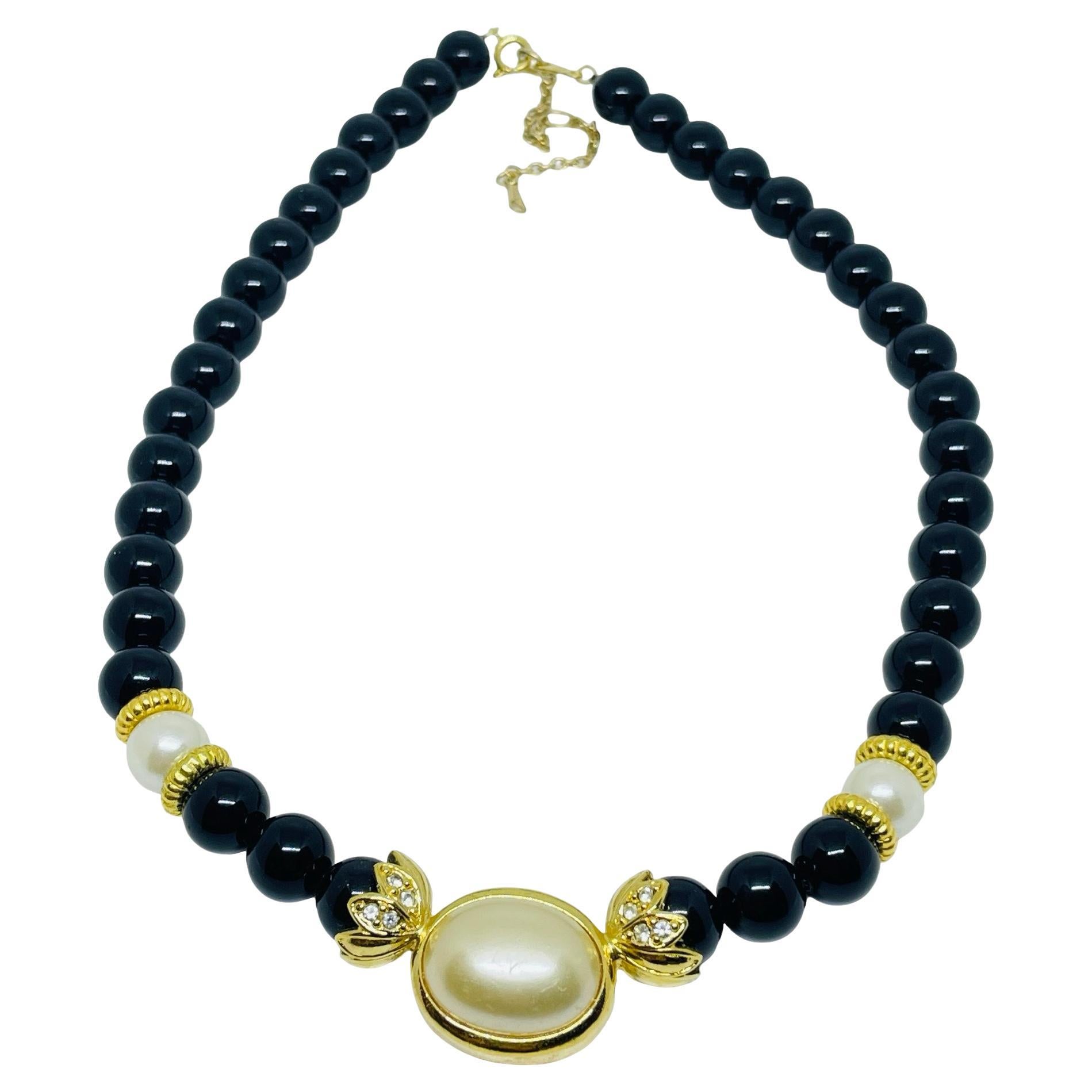 AVON signed vintage gold tone lucite pearl rhinestones designer beaded necklace