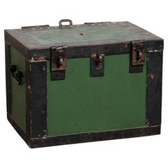 A fantastic antique marriage trunk or bridal box from 19th century France decorated with stylized foliate details that grace the exterior: iris and daffodils including their bright g...