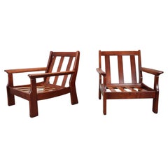 Paddel sofa by Jean Gillon for Probel, in leather and wood Beautiful and comfortable sofa in great condition with hardly any wear. We have a pair of chairs available also. Gillon's ...
