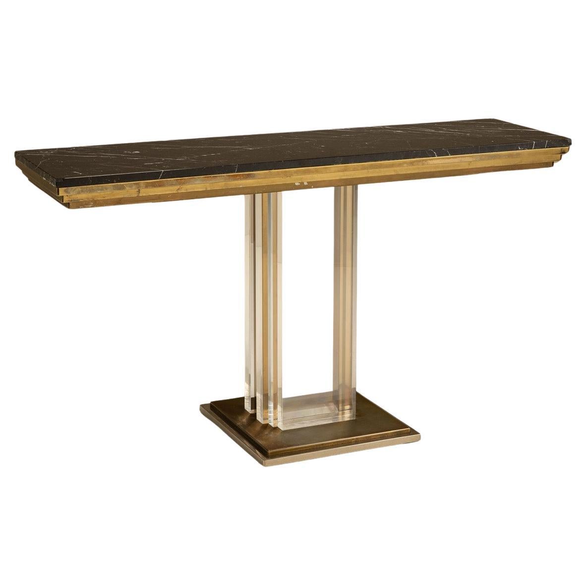 Belgochrom Console Table in Plexiglass, Brass and Marble, 1970s