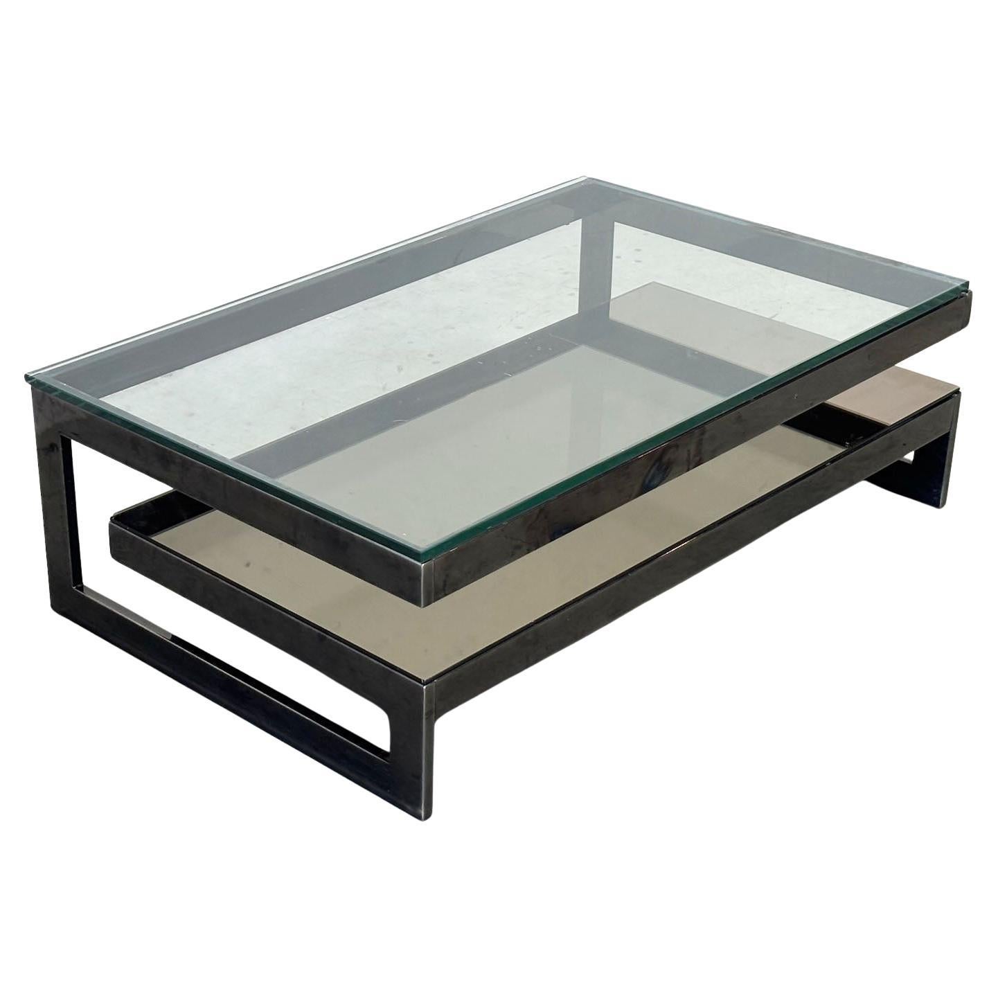 Elegant two tier nickel plated hollywood regency coffee table by Belgo Chrome, Belgium.