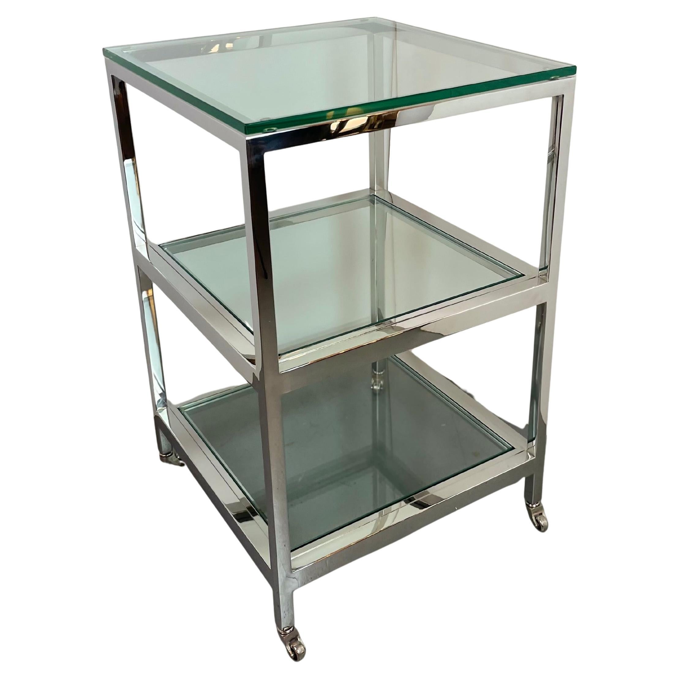 Beautiful side table on wheels that can be used as a bar-cart or console. High-end materials and finishes, all in chrome-plated metal, astonishing wheels, and thick glass tops. Desig...