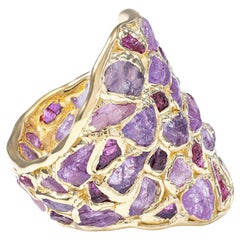 New 16.60 Carat Amethyst & Diamond Cut Sapphire Sterling Ring Size 7