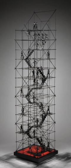 "Skyscraper" is a stunning single edition bronze sculpture created by Bill Starke, depicting a large industrial staircase, adorned with a large as...