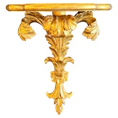 Italian Old Venetian Miniature Wall Shelf, Gilded Carved Acanthus, Rococo Style
