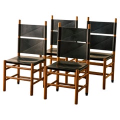Set of Six Iconic Razorblade Dining Chairs Carved Oak by Henry Kjærnulf 60's
