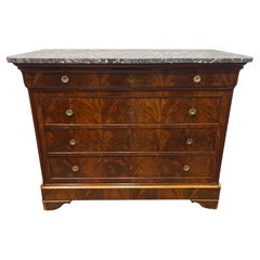 Mid 19th Century French Louis XVI Style Black Painted Chest of Drawers, Marble