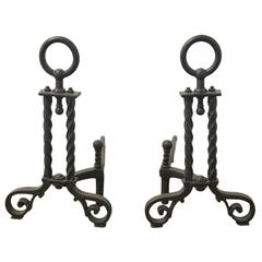 Pair of Bradley and Hubbard American Country Wrought Iron Andirons
