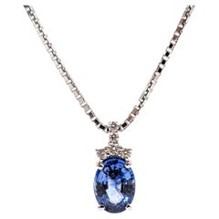 What a gorgeous and elegant necklace. This pendant is just swarming with beautiful Sapphires. I believe I counted 59, 2.15 mm round cut sapphires which total 2.07 carats. The pend...