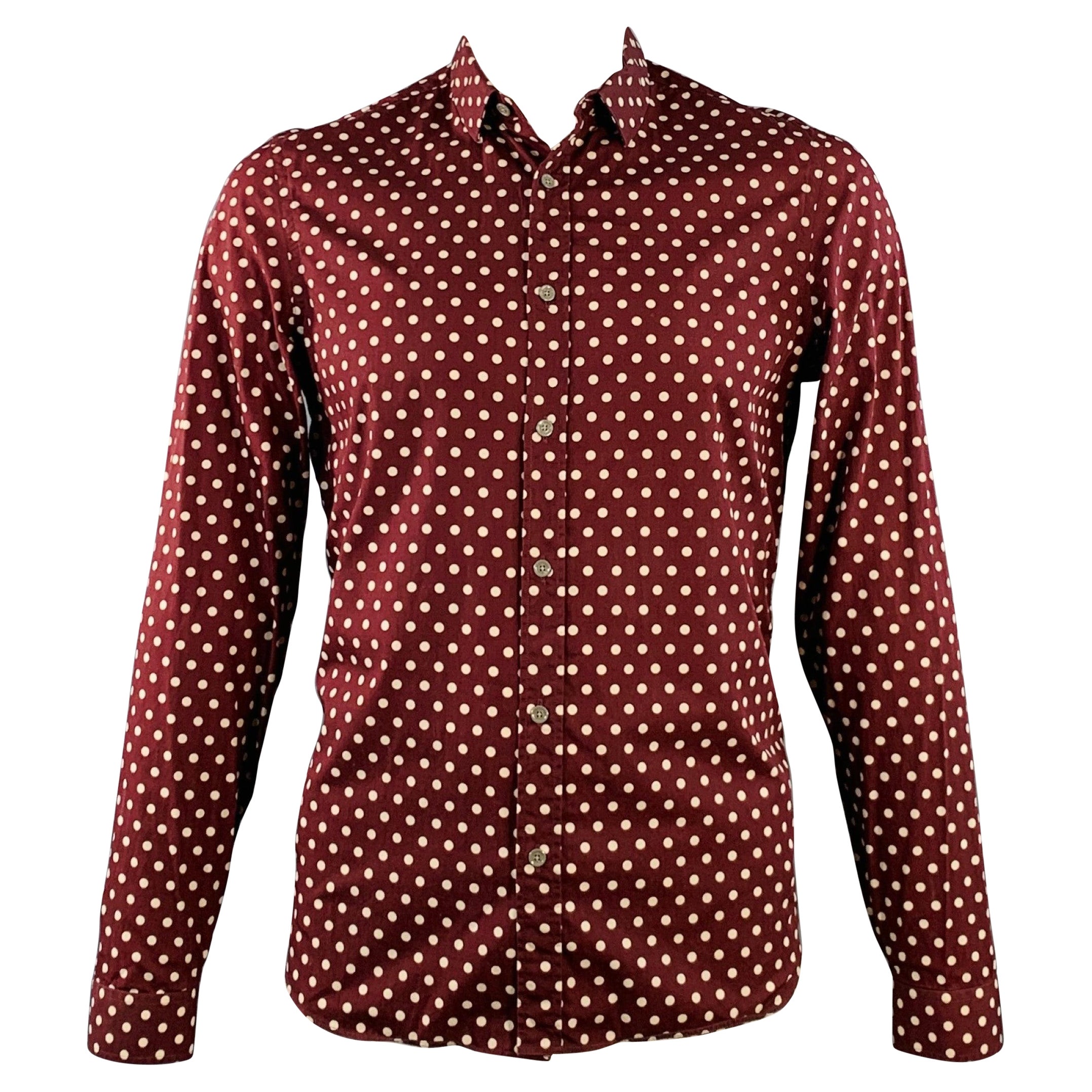 BURBERRY PRORSUM Size L Burgundy Beige Polka Dot Cotton Long Sleeve Shirt