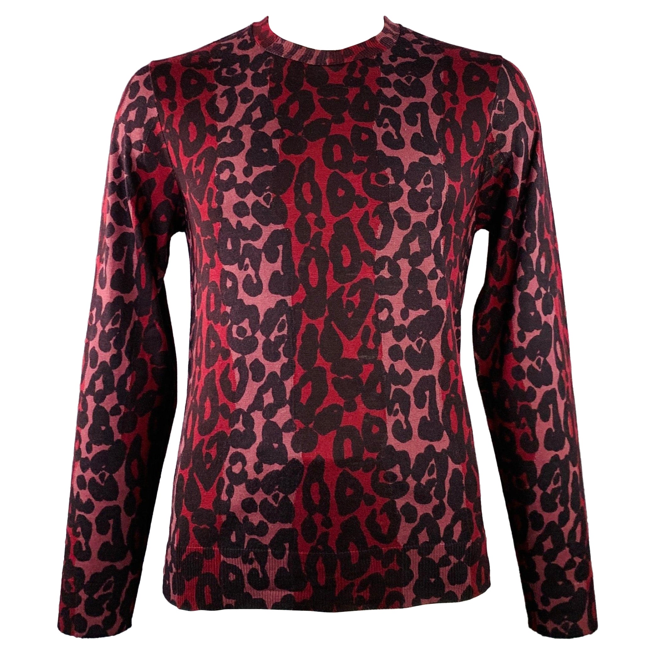 BURBERRY Size XL Red Black Pink Animal Print Wool Silk Crew Neck Pullover