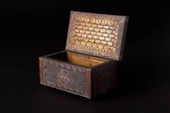 A fine example of metal smithing, this box has been lovingly constructed. The metal cladding is secured by metal coping at the corners and hinge work. Each nailhead is perfectly spac...