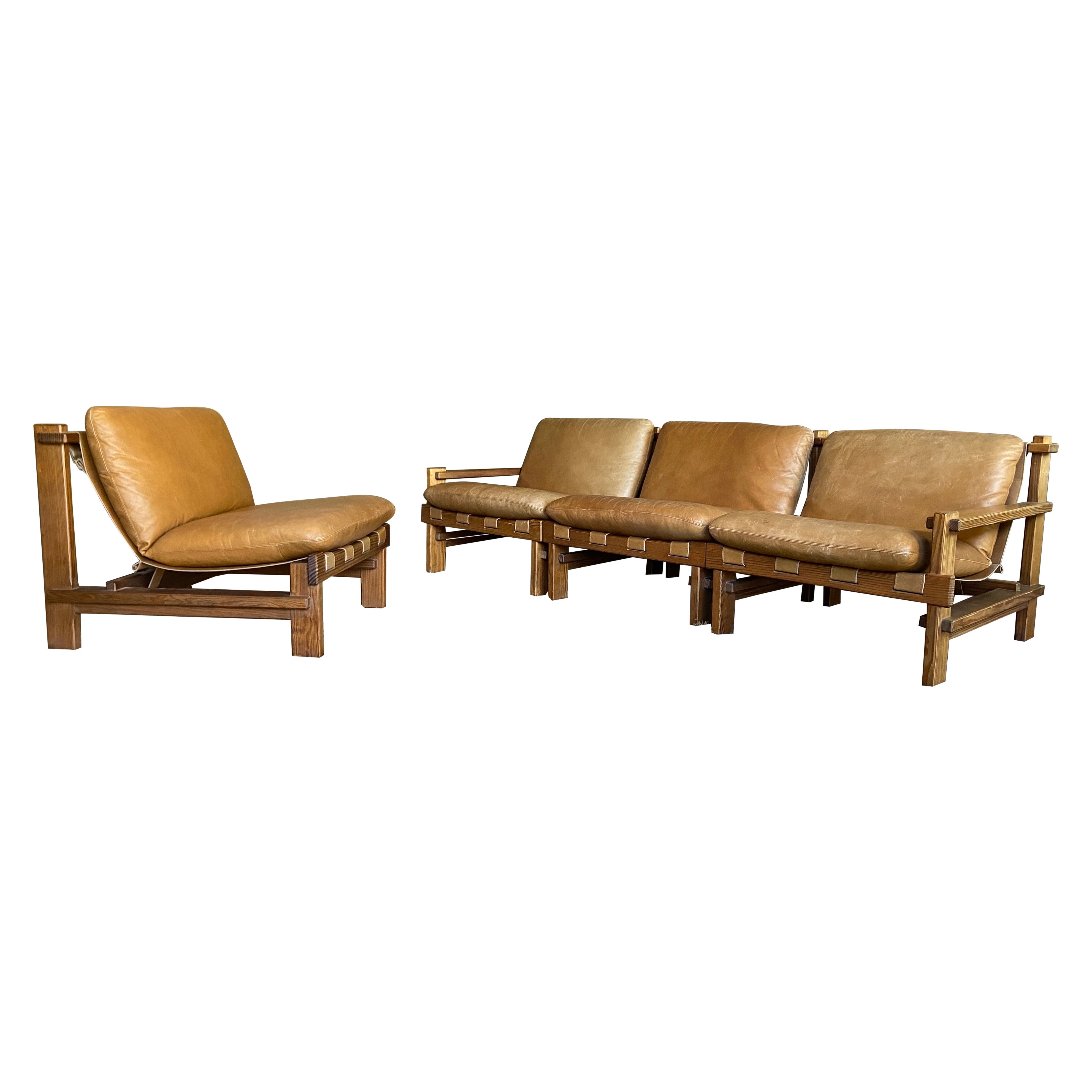 Five Cognac Leather lounge Chairs, Sofa by Carl Straub Germany, 1960s