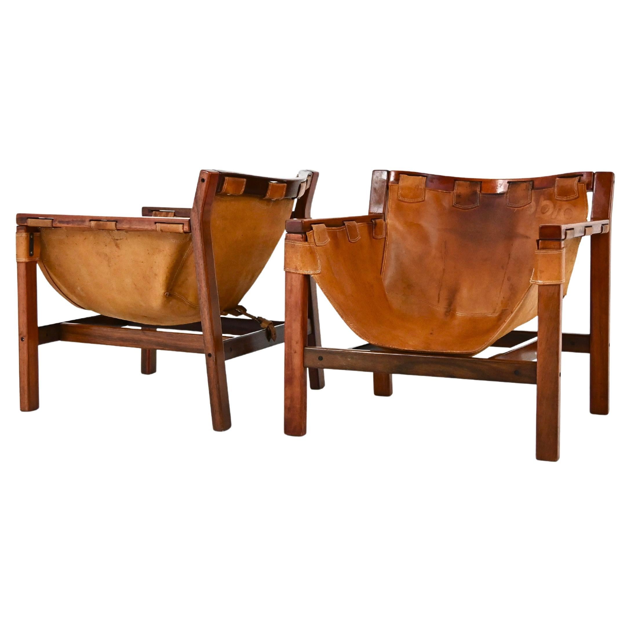 Brazilian Mid-Century Set of Two Chairs in Hardwood and Leather by Forma, 1950s