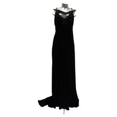 Black silk side drape evening gown. Padded bra and boned bustier inside the dress. NEW with tag. SIZE 12 US