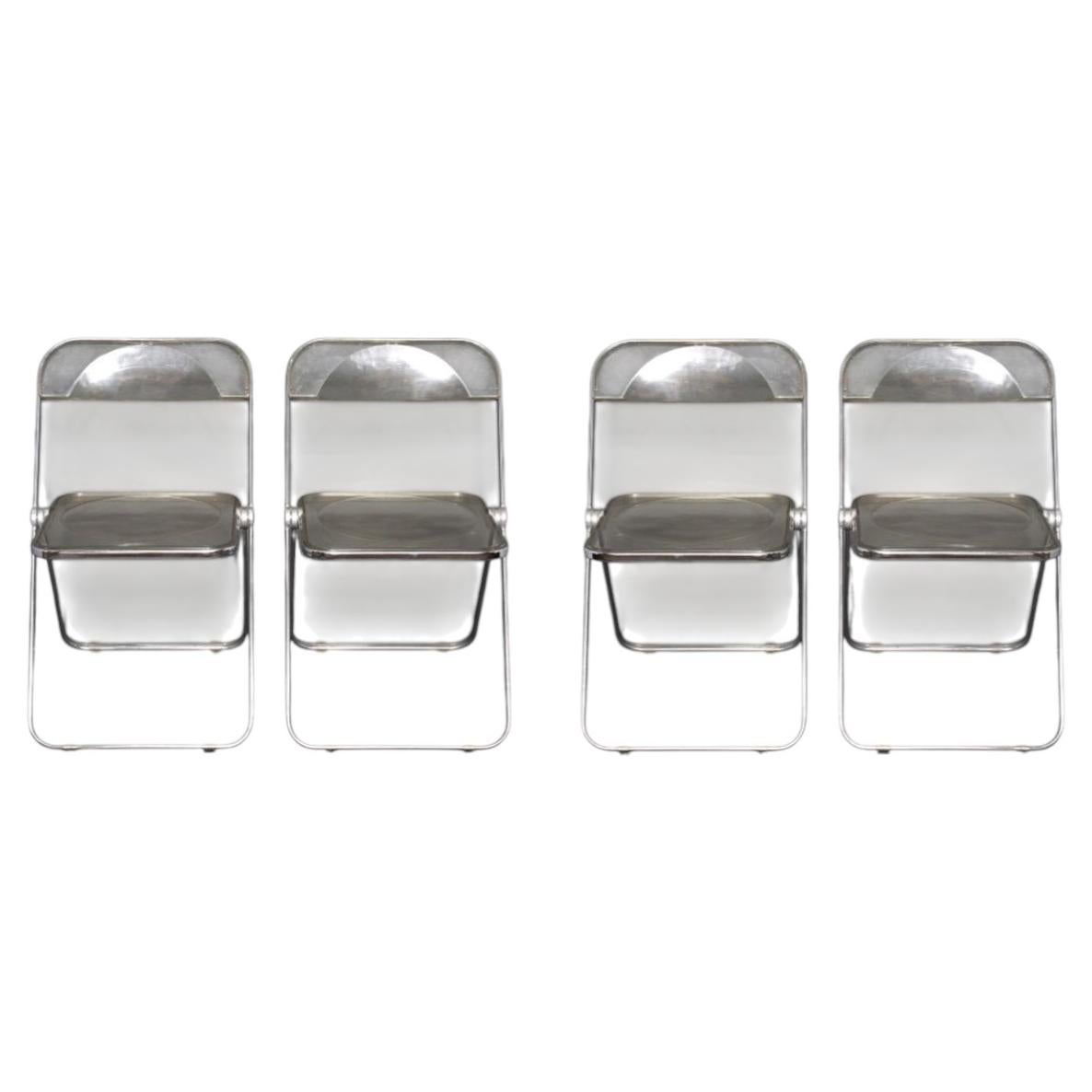 Anonima Castelli Plia Folding Chairs Giancarlo Piretti Color Smoked Lucite set 4