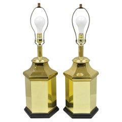 This wonderful pair of designer table lamps were manufactured by the Zina Lamp Co. of Forest Knolls, CA. Lamp design is attributed to Raymond Pfennig. Lamps features a turned, solid...