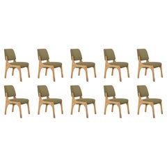 Set of 10 Danish Henning Kjærnulf Razor Blade Chairs of Oak + New Sheepskin 1970