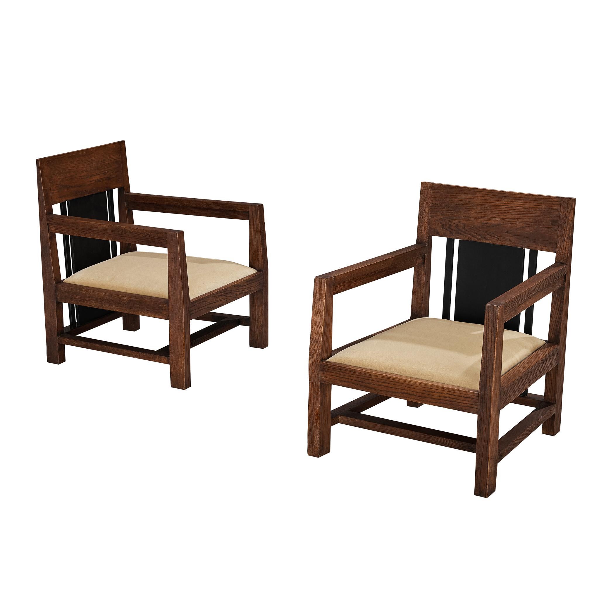 Cor Alons for Winterkamp en Van Putten, pair of armchairs, oak, lacquered wood, velvet, the Netherlands, 1927