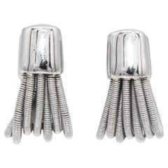 Chanel 25 Collection Silver-Tone Oval Stud Oversized Large Earrings