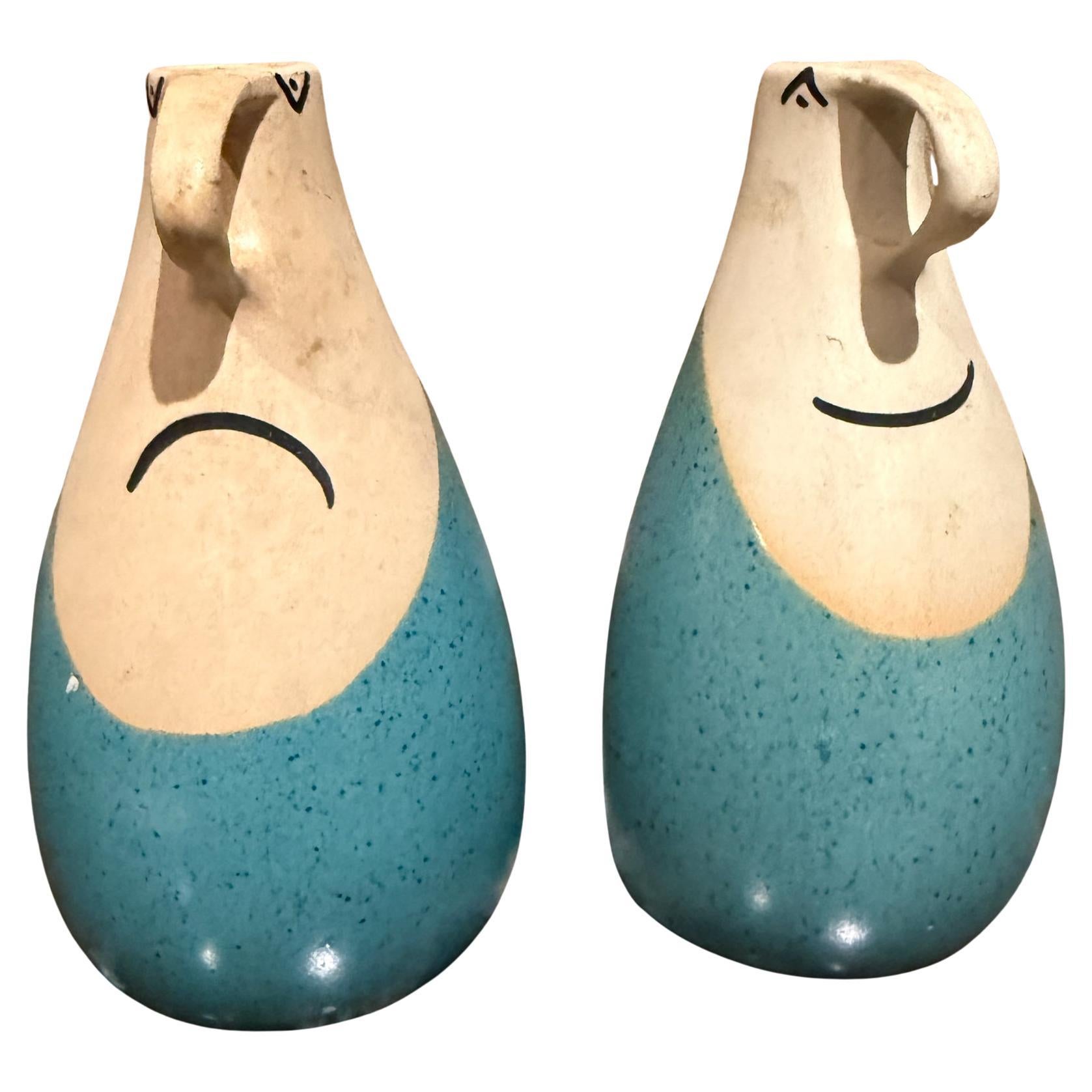Glad 'n Sad Cruet Set Oil Vinegar Pitchers David Gil Bennington Potters