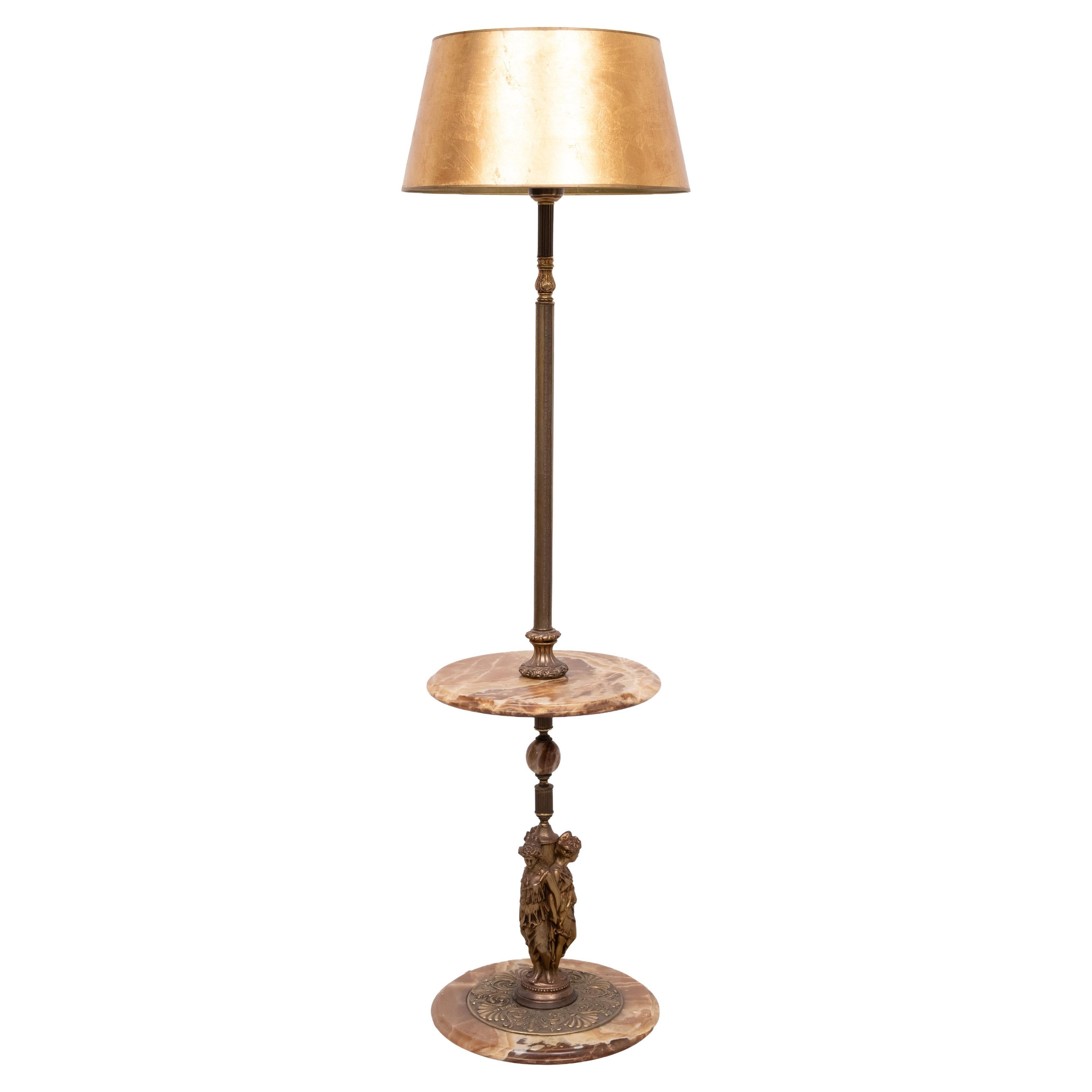 Vintage Floor lamp with side table, designed and produced by Lustrerie Deknudt in the 1970s. The premium onyx and the gilded Three Graces—on a lamp model from the Gray series .luxuri...