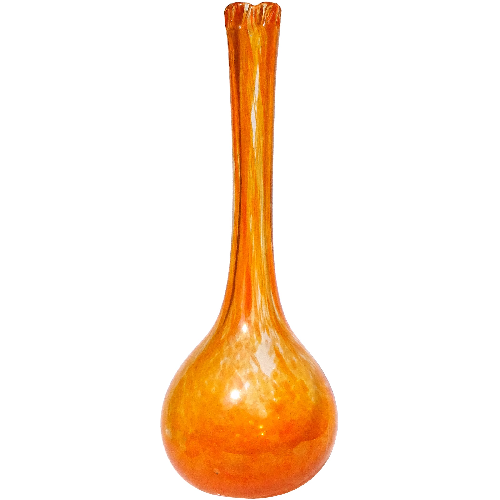 Murano Dino Martens Orange Iridescent Italian Art Glass Monumental Flower Vase