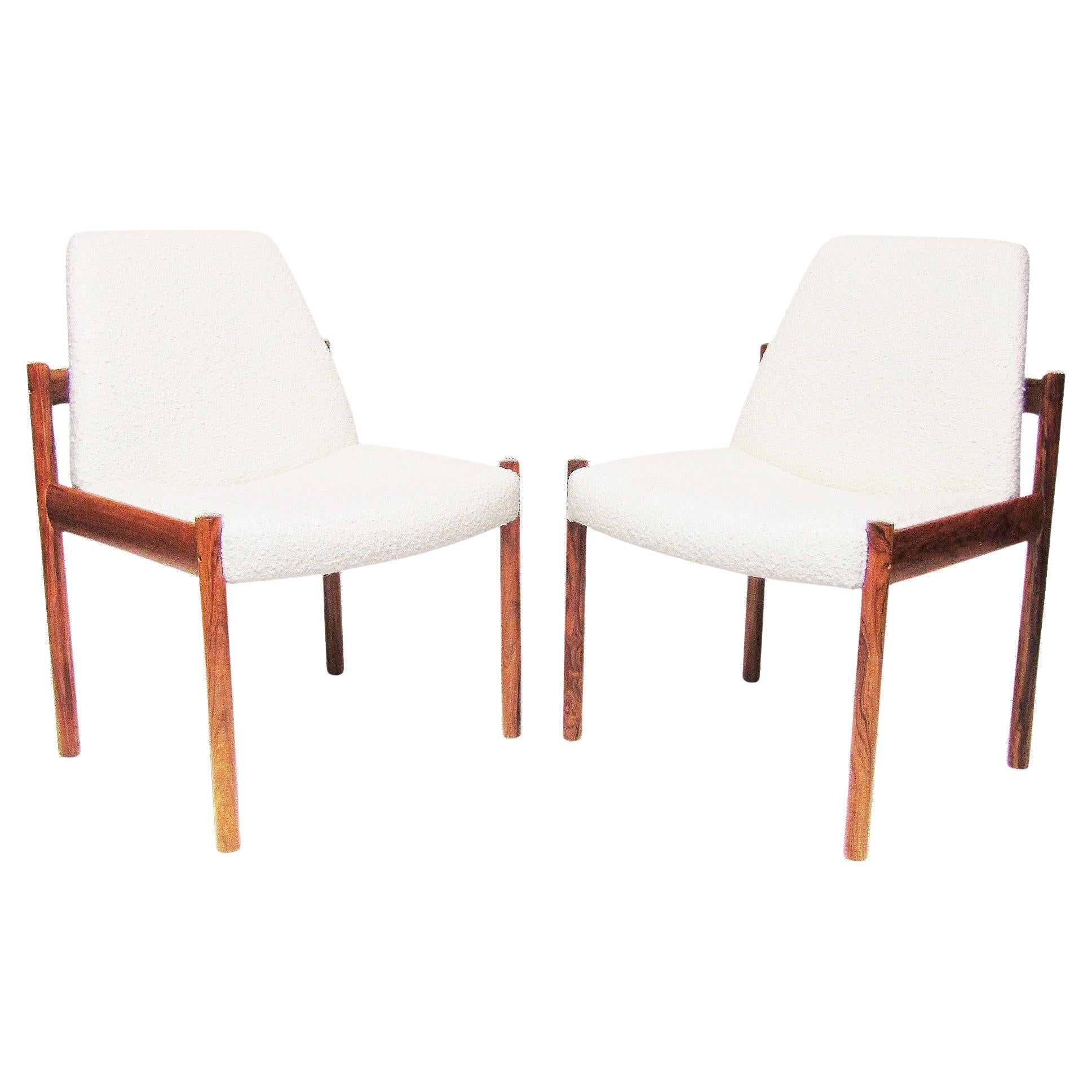 Two 1960s Side Lounge Chairs in Rosewood and Bouclé by Sven Dysthe for Dokka