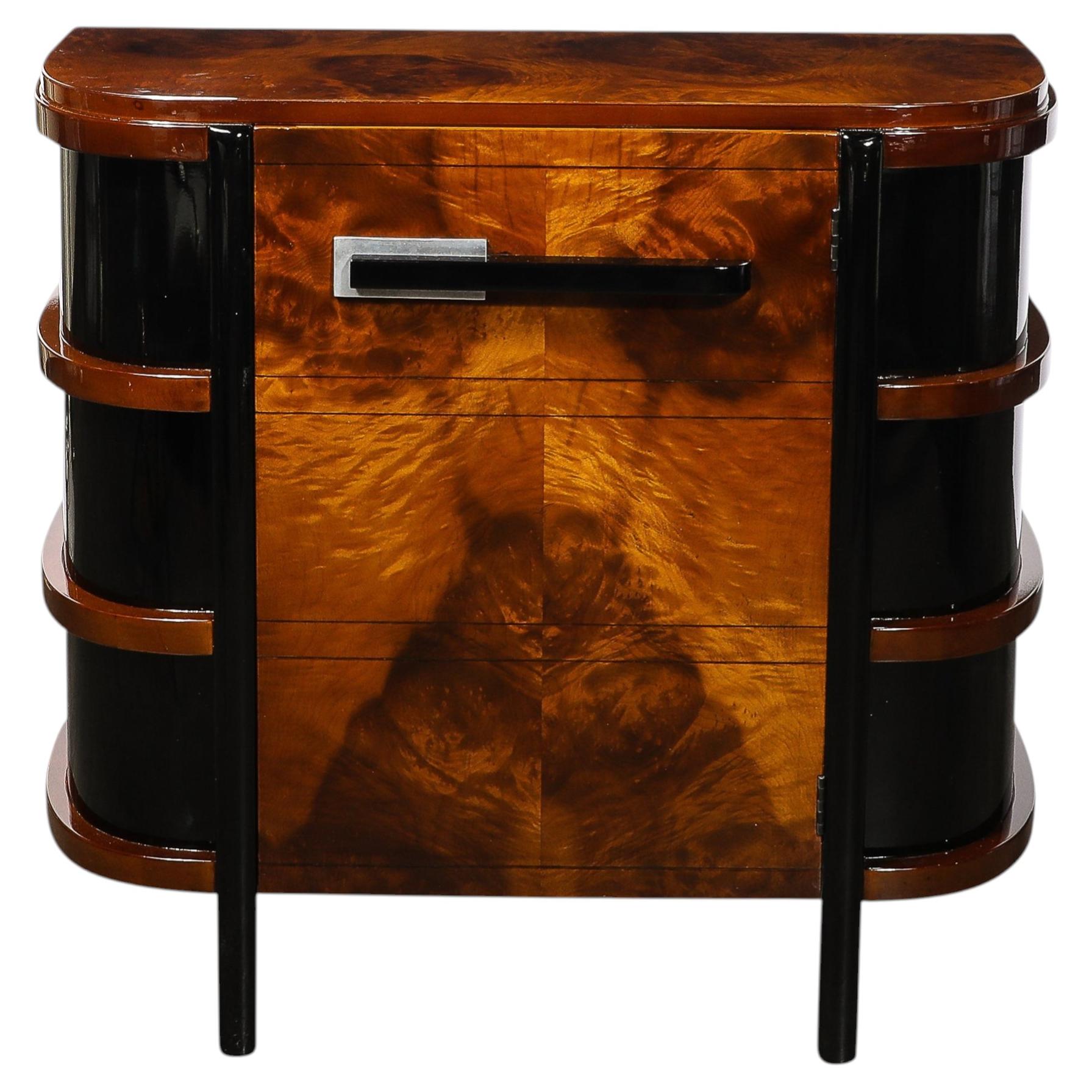 Art Deco Bookmatched & Burled Elm & Black Lacquer Sideboard by Donald Deskey