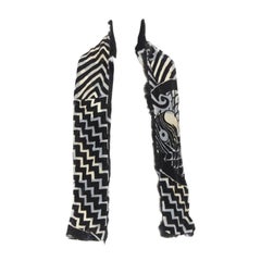 A beautiful large black, magenta and white silk scarf by Roger Vivier. It has an abstract pattern in magenta with lines and stripes of black on a white background. There is a small ...