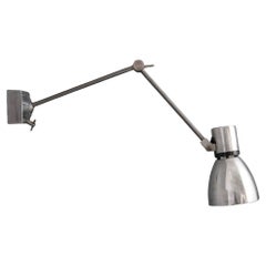 An adjustable brass and pink fabric wall light designed and produced in Sweden, c. 1940s. Heavy oxidation present on brass, mildew/staining present on fabric shade. Overall Dimensi...