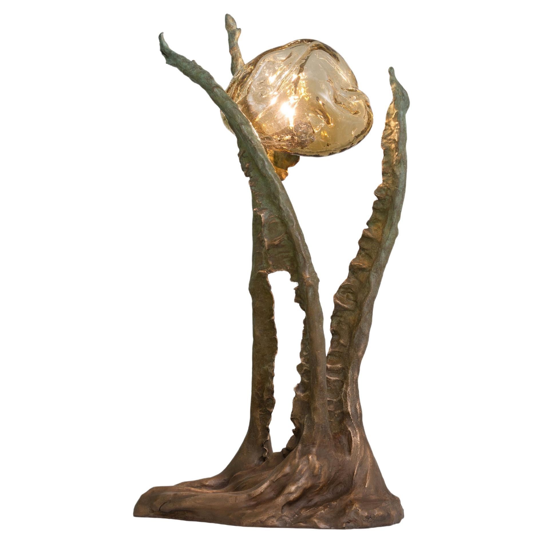 Contemporary Bronze and Handblown Glass Table Lamp, France