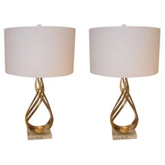 Mid-Century Modern German Hollywood Regency Style Brass Table Lamps Goldkant