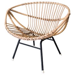 Pair High Back Rattan Armchairs Lio Carminati Italy 1950's