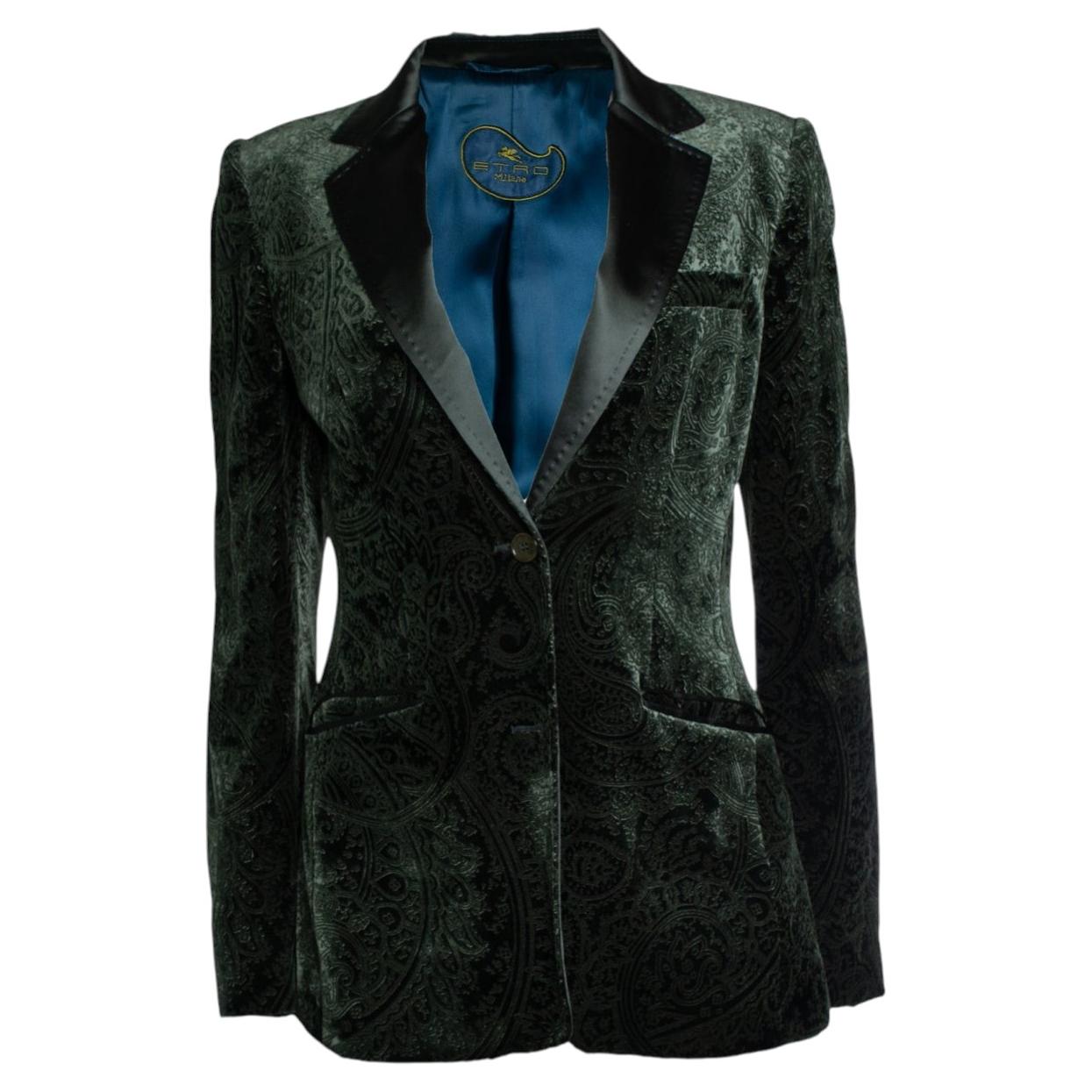 authentic Etro velvet coat in green viscose (80%) silk (20% with embellished cuff, notched lapels, two front flap pockets and a slit in the back. Lined in ...